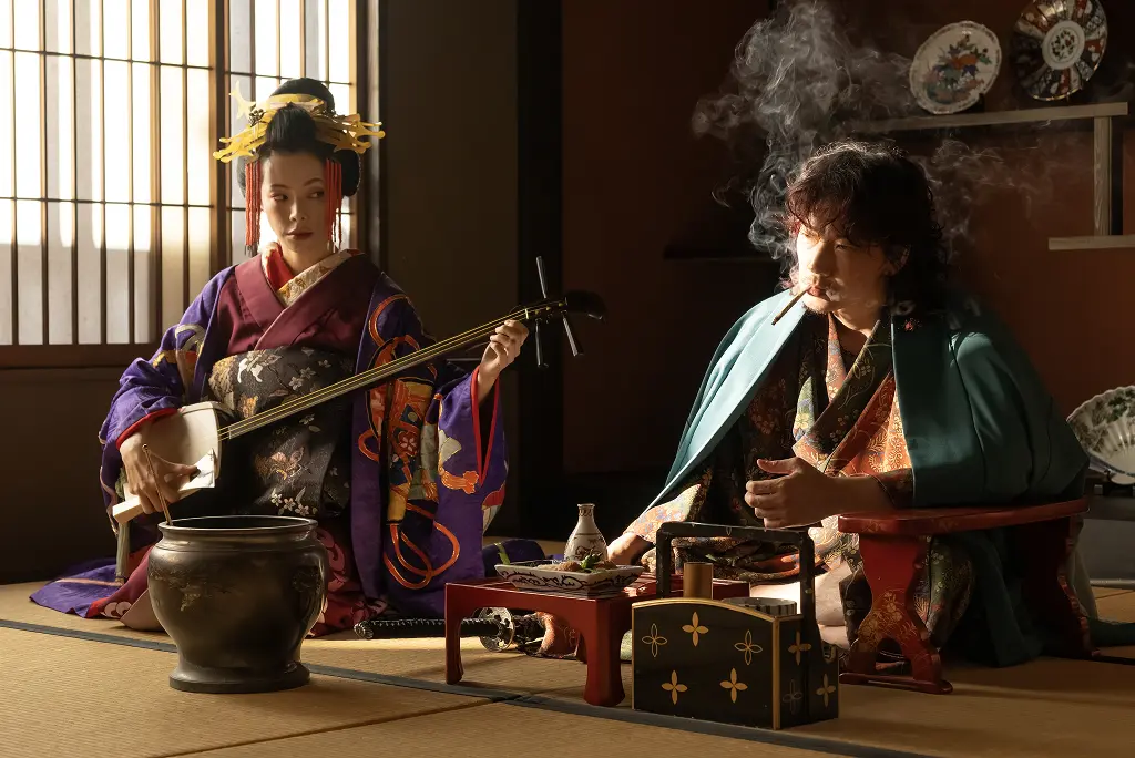 夕陽が島原を赤く染める中、芹沢は静かに刀を抜き、その時を待つ。